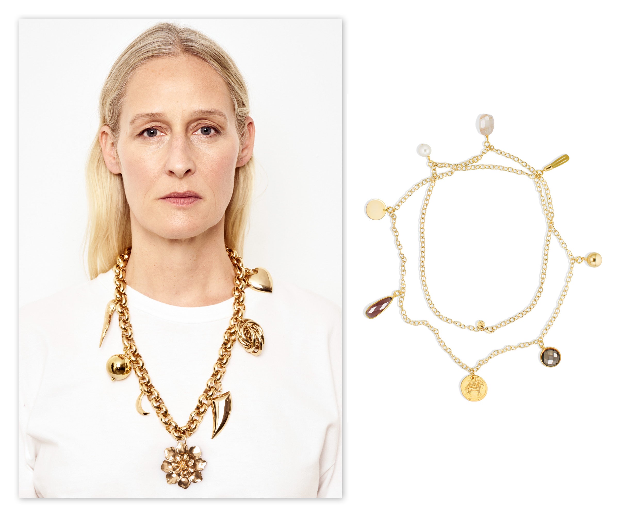 Ketten – halsnah oder in Maxilänge – komplettieren den Look und versehen ihn mit wohl dosiertem edgy Twist. Sinnlich, individuell und informell. Aufregende Silhouetten, erlesene Materialien und ausbalancierte Farbspiele verschmelzen zu ausdrucksstarken Schmuckstücken für die Frau.